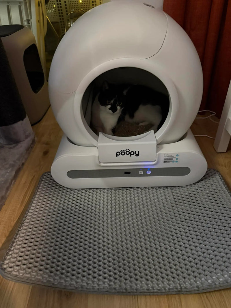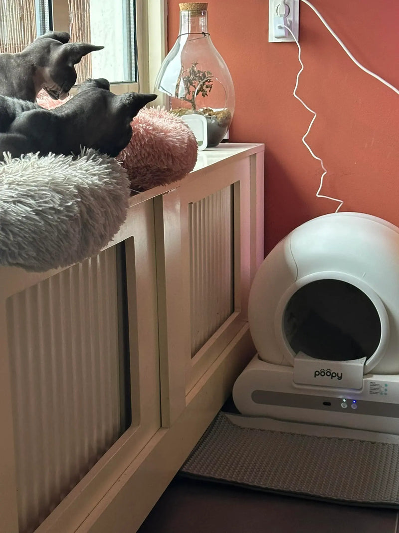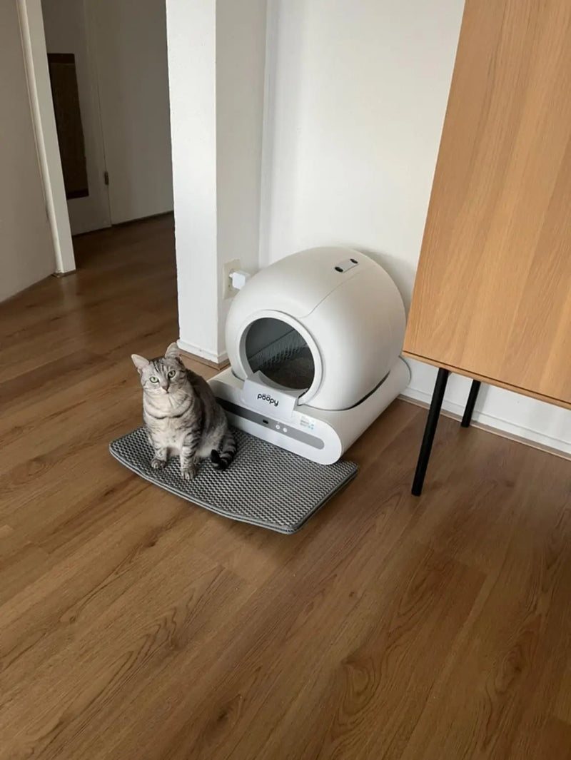 Ik ben heel tevreden met de Poopy Nano 2. Mijn kat was er meteen nieuwsgierig naar, vooral toen de bak begon te draaien. Hij schrok er gelukkig niet van en was er snel aan gewend. Wat ik zelf erg prettig vind, is dat je via de app meldingen krijgt: wanneer je kat de bak heeft gebruikt en zelfs het gewicht van je kat wordt bijgehouden. Dat is handig, ook als je niet thuis bent.