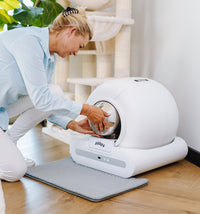 De best beoordeelde automatische kattenbak van Nederland inclusief een gratis drinkfontein, afvalzakjes en een kattenbakmat.